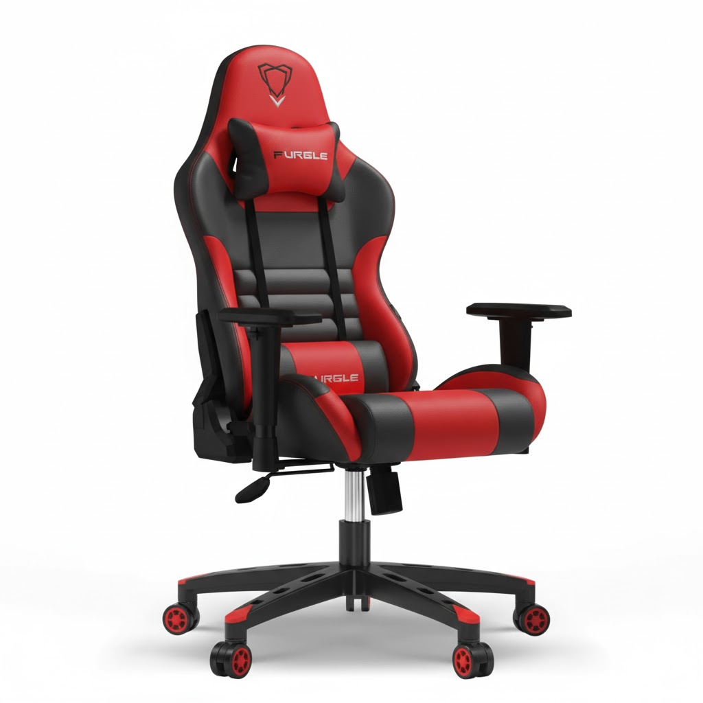 كرسي ألعاب جلد فاخر باللونين الأحمر والأسود